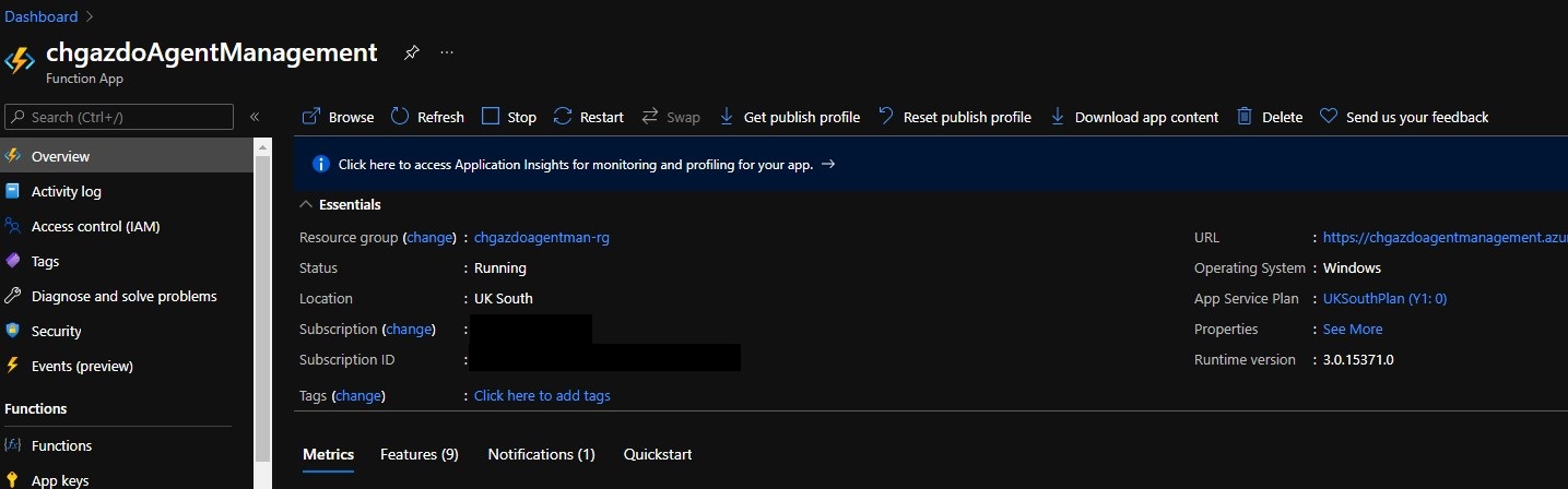 Once your local function is working, you can use VSCode to deploy it to Azure. Microsoft make it easy, they have created an excellent walkthrough for the deployment wizard. It may take a few minutes, but you will end up with a function that looks a bit like this.